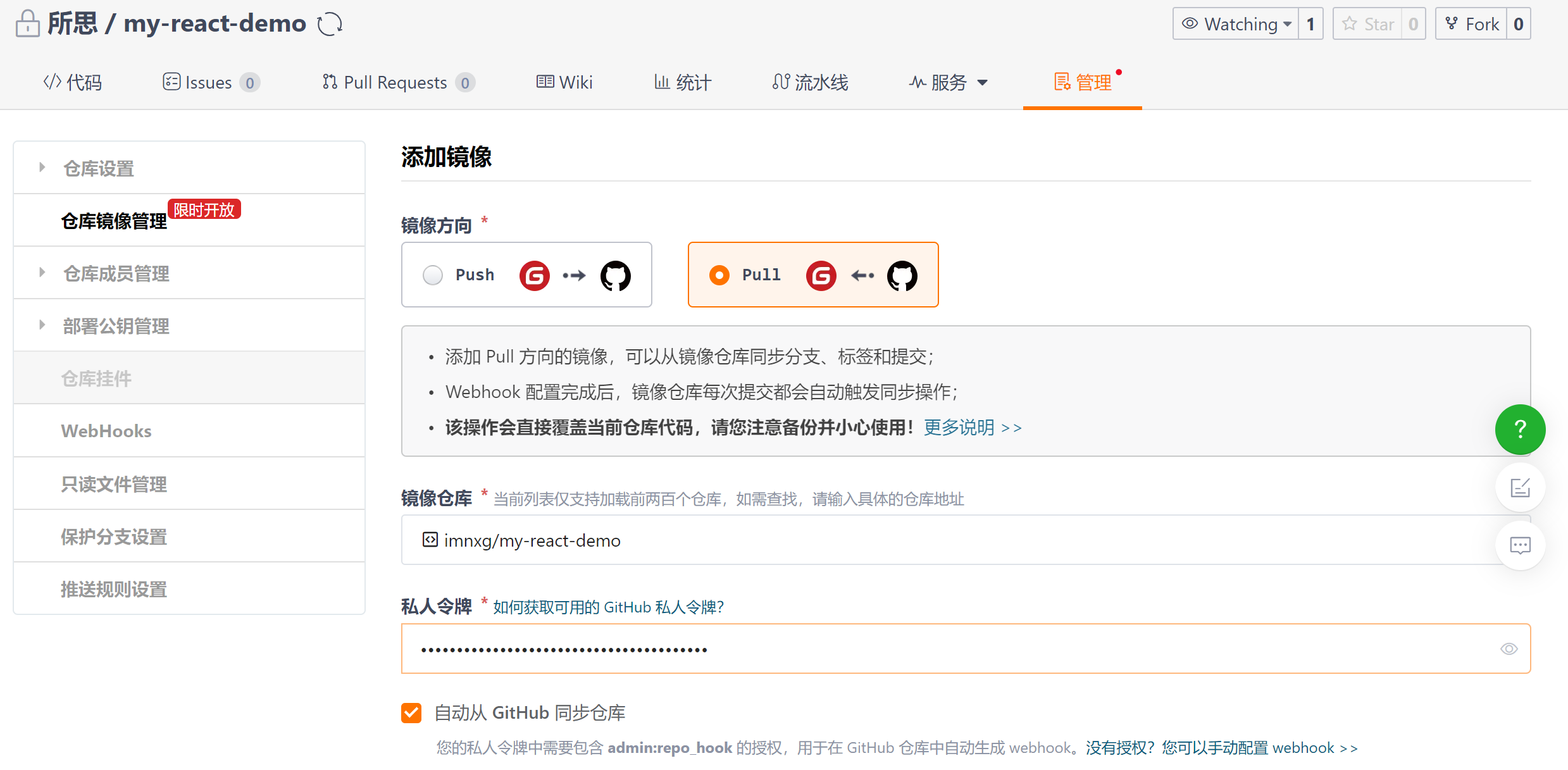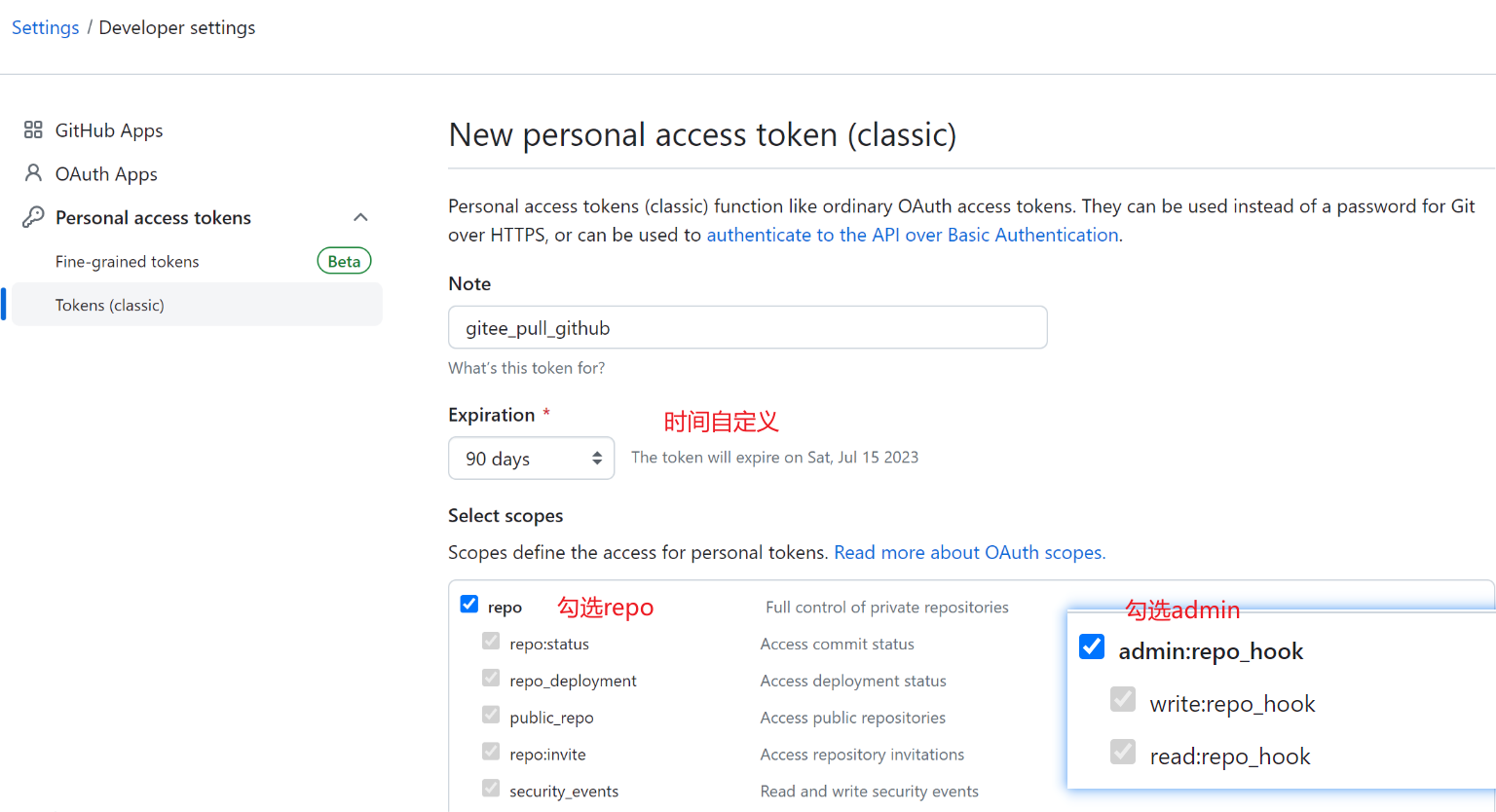 获取GitHub私人令牌的方式简单贴一张图: 具体如何创建GitHub私人令牌步骤就不展开了